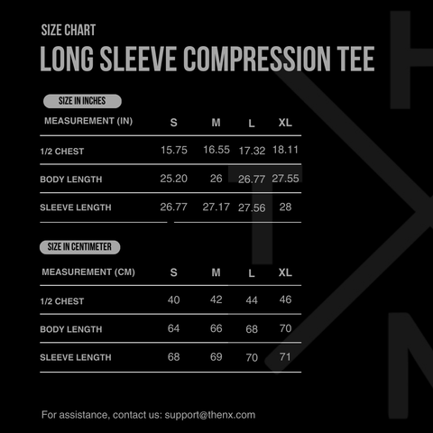 A compression shirt should fit snugly without cutting off circulation. It should contour to your body, feel supportive, and allow full range of motion. Use the Thenx size chart to find your perfect fit based on chest and torso measurements.